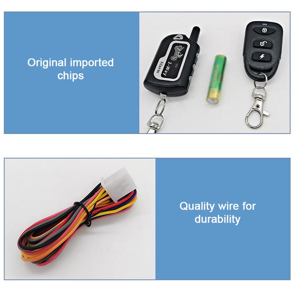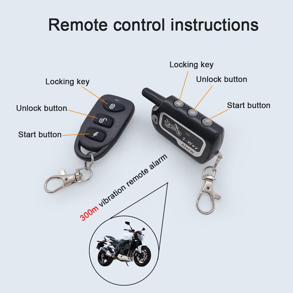 Дистанционное управление: Двусторонняя мотоциклетная сигнализация поддерживает дистанционный запуск двигателя, остановку, блокировку и разблокировку, поддерживает бесключевое управление, проста в использовании.