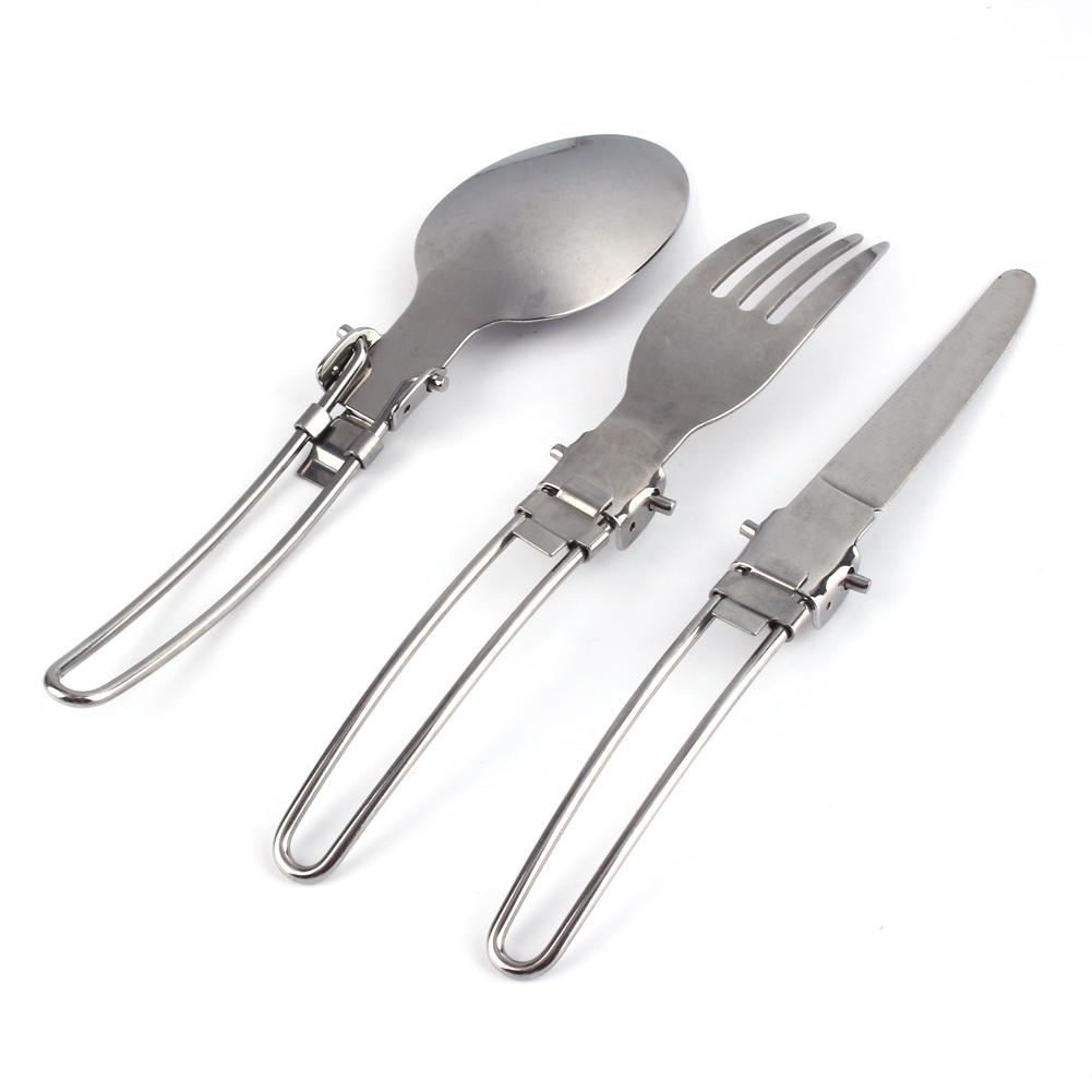 Нержавеющая сталь портативный кемпинг пикник складной набор столовых приборов нож вилка ложка сумка
