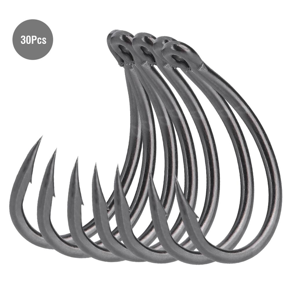 30pcs Perforated Sharp Barbed Carbon Steel Hook Fishhook for Sea Fishing (6#)