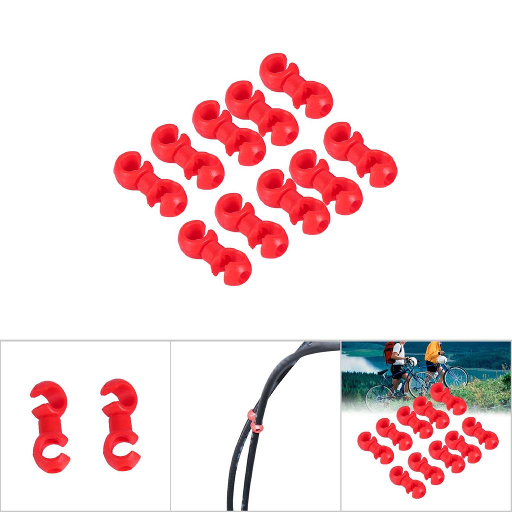10 x Велосипедные S-образные клипсы с отверстиями для пряжек, направляющие для тросов тормоза и переключения передач, направляющие для шлангов(красный)