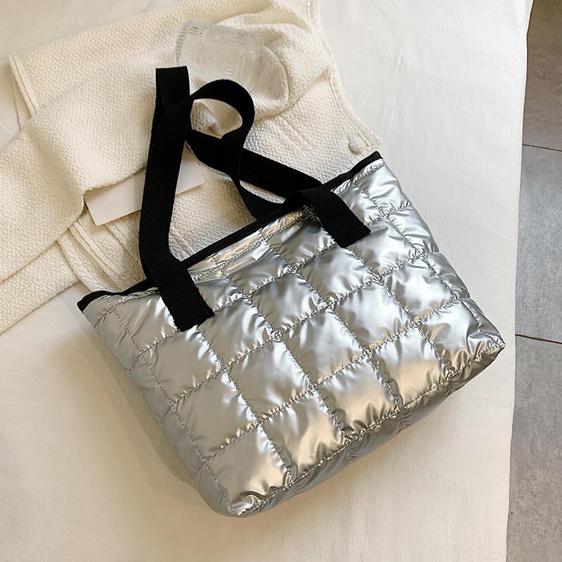 Зимняя новая сумка-тоут для женщин, сумка из космического хлопка, большая вместимость, на плечо, модная тканевая сумка, дорожная большая пуховая сумка CLE