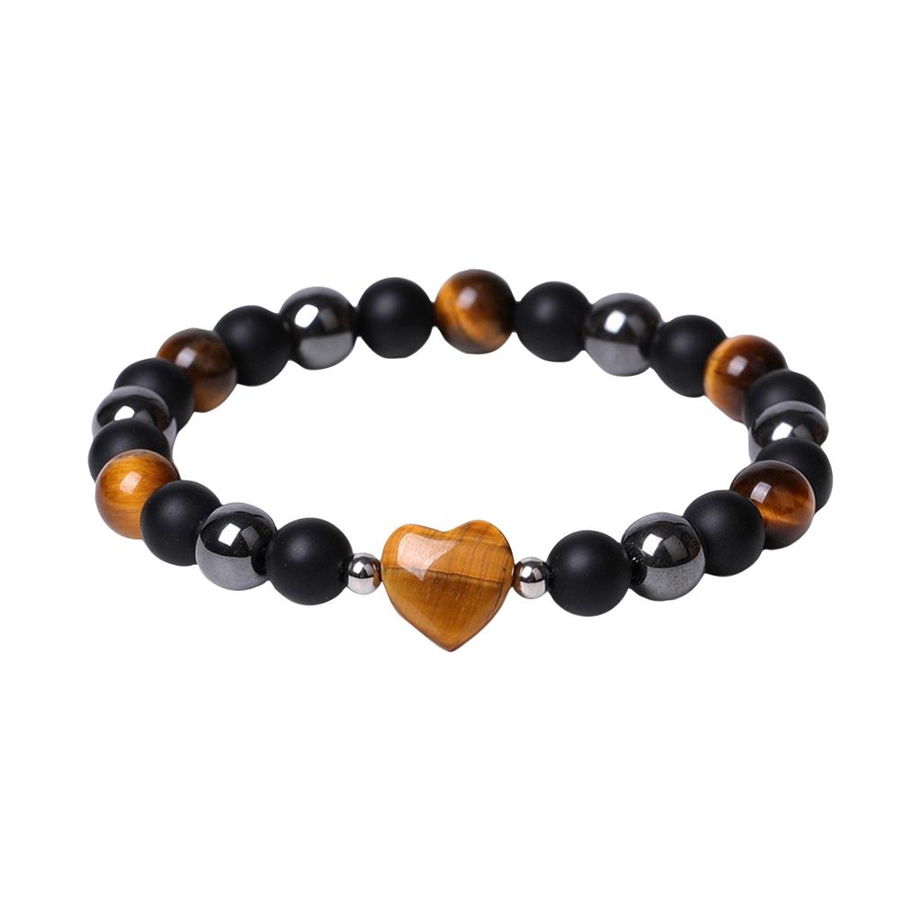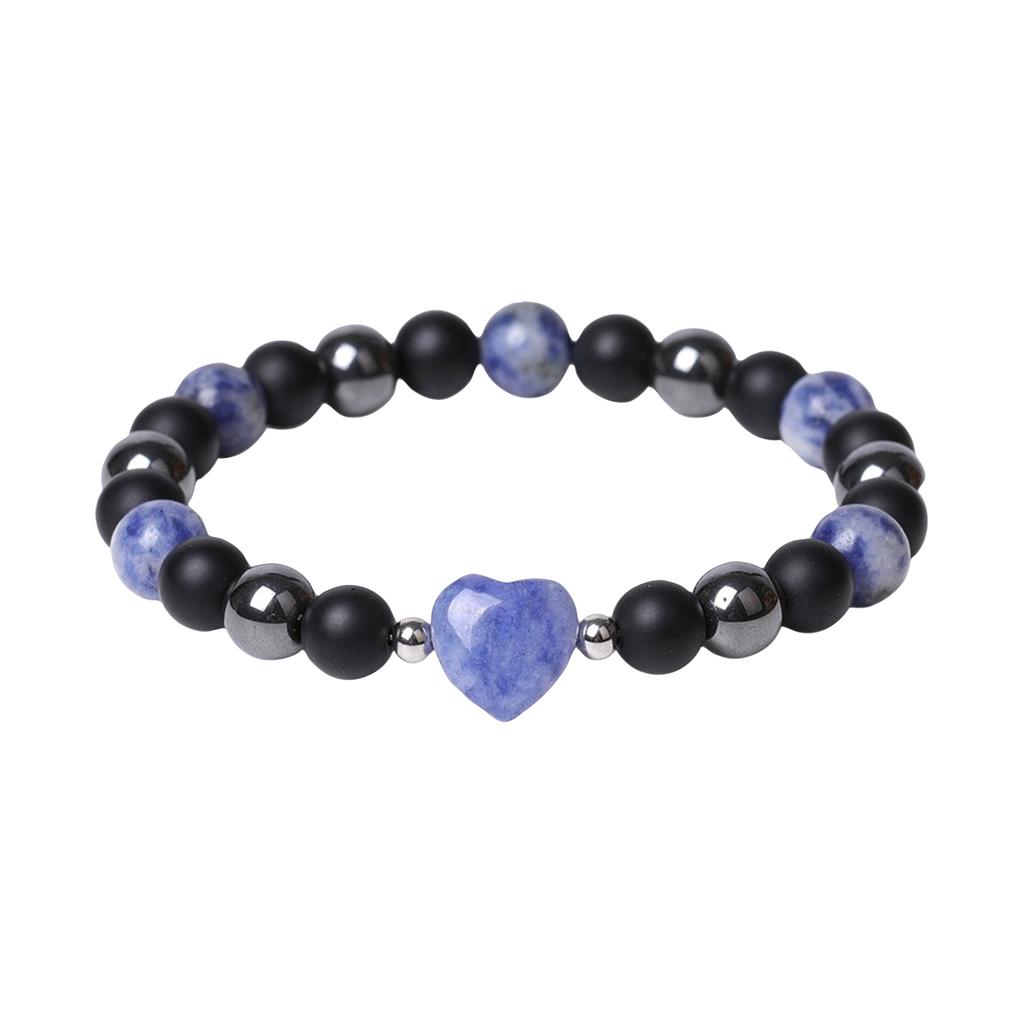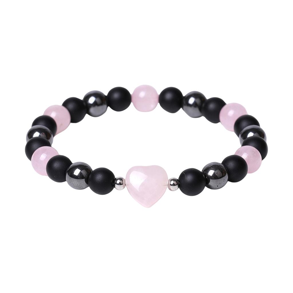 Натуральные аметисты Сердце Браслеты для женщин Матовый черный оникс Гематитовые бусины Эластичный браслет Мужчины Защита здоровья души Ювелирные изделия