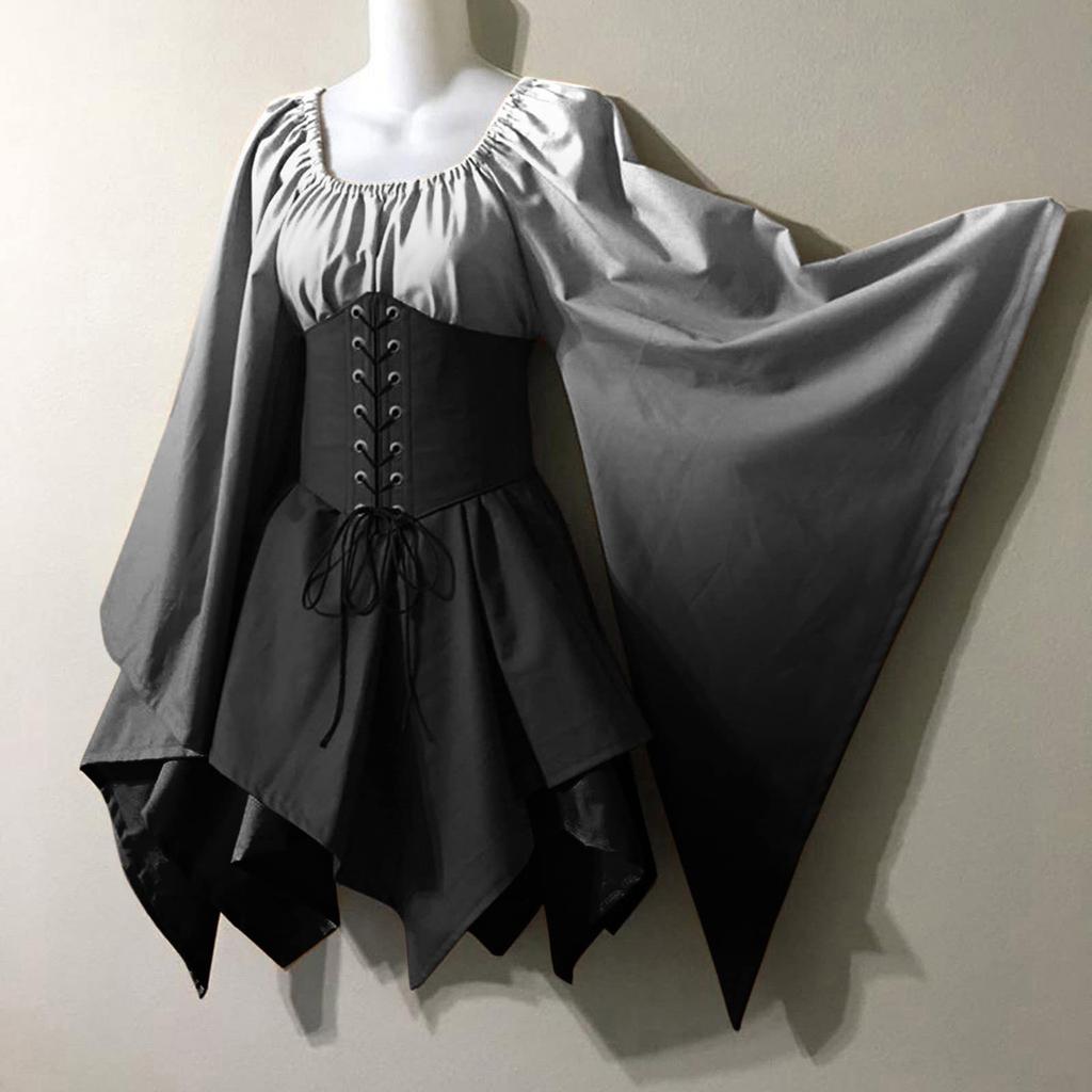 Винтажный костюм эпохи Возрождения, дворцовый, средневековый, готический, женский, для Хэллоуина, косплей, ретро, платье с длинным рукавом и шнуровкой на талии, пэчворк