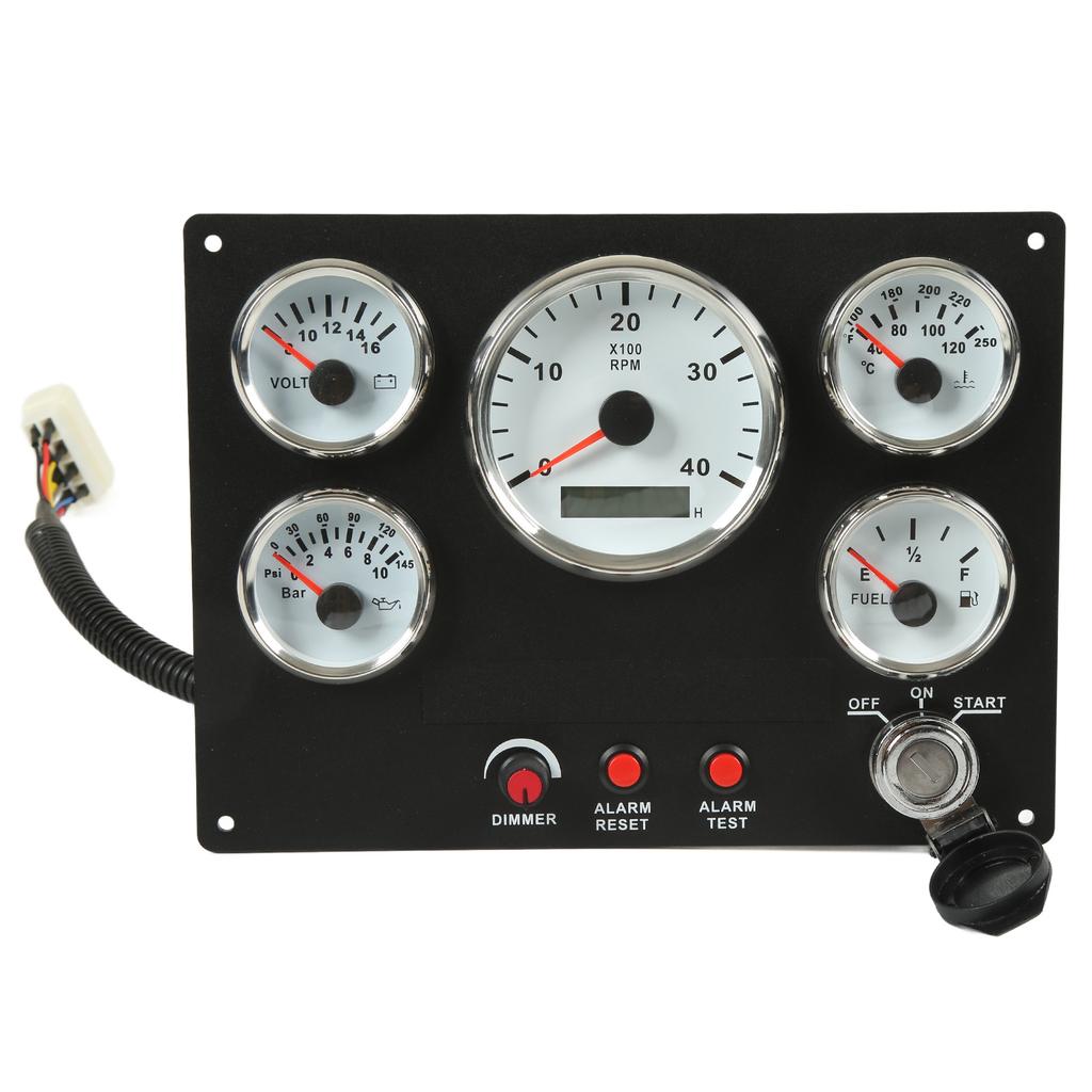 1. Набор из 5 калибров: Панель приборов имеет 5 приборов, тахометр 85 мм может показывать частоту вращения двигателя 0-4000 об/мин, таймер 99999,9 ч; 52-мм датчик температуры воды показывает температуру воды 100–250 градусов Фаренгейта ; 52-мм указатель уровня топлива показывает объем масла в баке F-1 2-E; Манометр давления масла 52 мм может показывать давление масла в баке 0-10 бар; Вольтметр 52 мм может показывать напряжение аккумулятора 8–16 В.