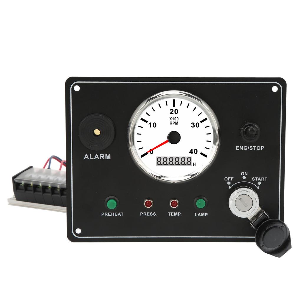 4. Многофункциональный: Панель может отображать частоту вращения двигателя 0-4000 об/мин и 9999,9 ч, и она оснащена сигнализацией, кнопками запуска и остановки двигателя ВКЛ/ВЫКЛ, сигнализацией низкого давления масла, сигнализацией температуры воды, кнопкой подсветки и кнопкой предварительного нагрева и т. д.