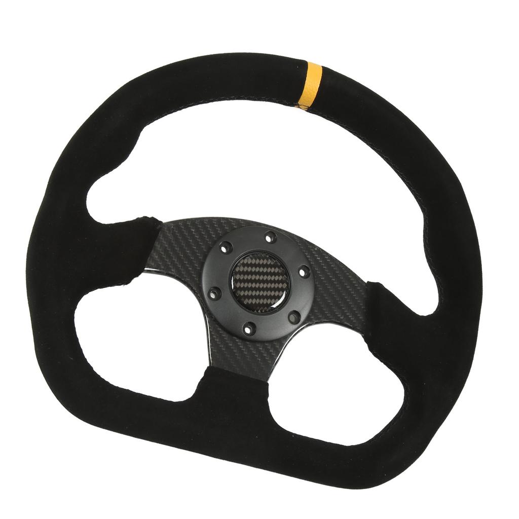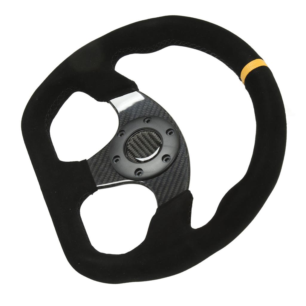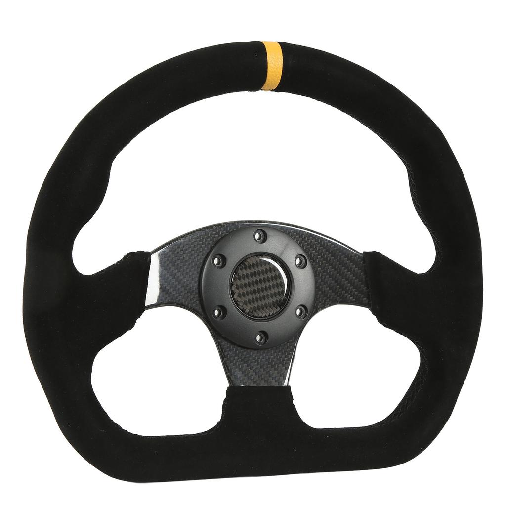 Car Steering Wheel Black Stitching Carbon Fiber 6 Holes Comfortable Grip Universal for Modification