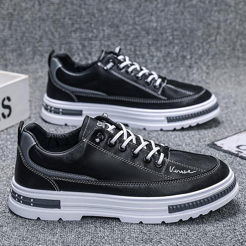 Мужские осенние кроссовки на платформе Водонепроницаемая кожа Повседневная обувь Удобная шнуровка Белая обувь Нескользящая подошва мужская повседневная обувь