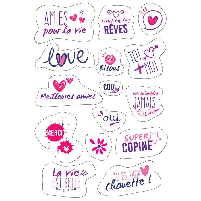 Gommettes mots girly de 3,5 à 9,5 cm 30 pièces