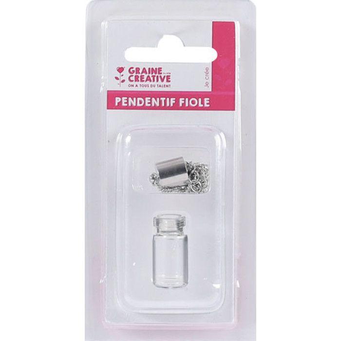 Pendentif - Argentée - Fiole en verre - 2,5 cm - Mixte - Création de bijoux