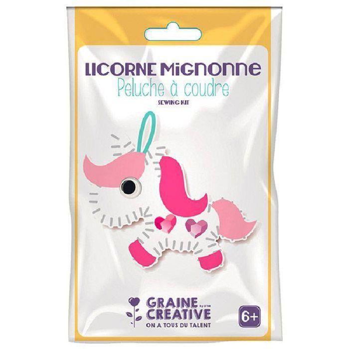 Kit peluche à coudre - Licorne - Rose - 12 x 19,5 cm - Inclus : feutrine, aiguille, fil