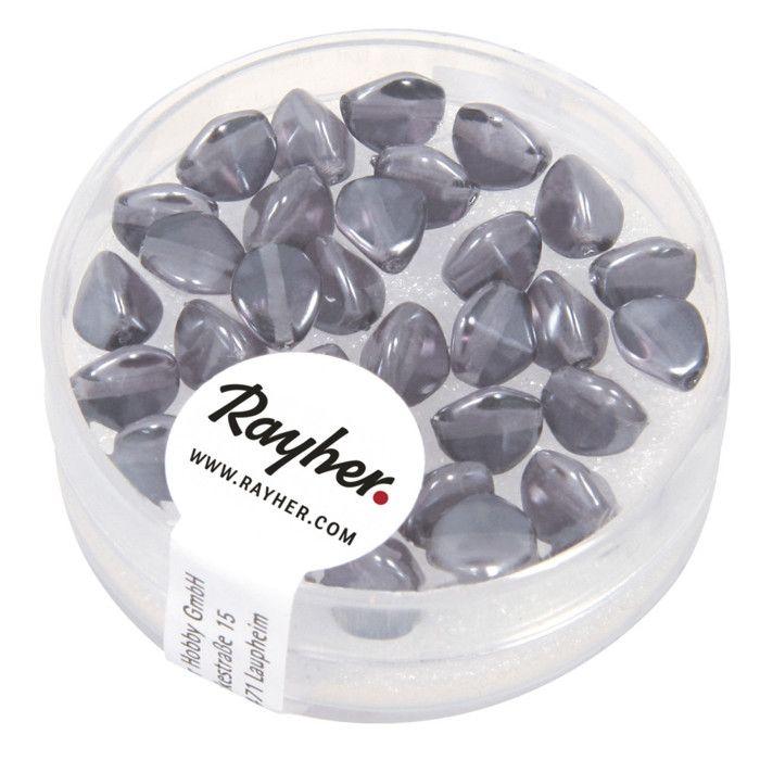Perles en verre - Triangulaires, anthracite, 7 mm, boîte 32 pièces