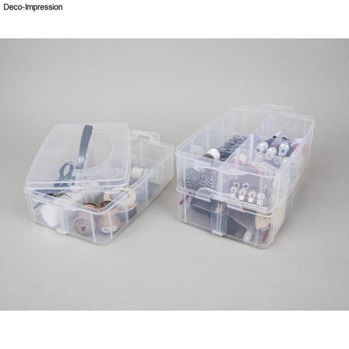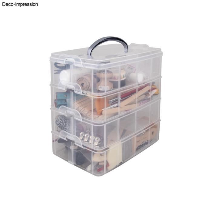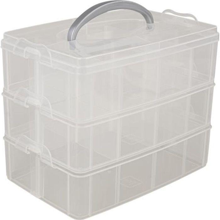 Boîte de rangement - Transparent - 23,1x15,6x18,5cm - 3 niveaux - Poignée intégrée