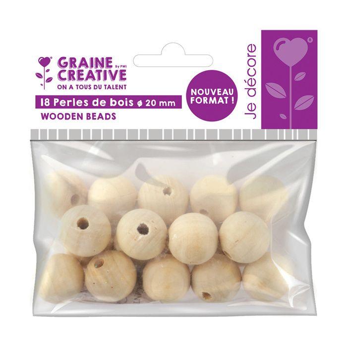 Perles en bois - GRAINE CREATIVE - 20mm - Couleur blanche - Brut - Mixte