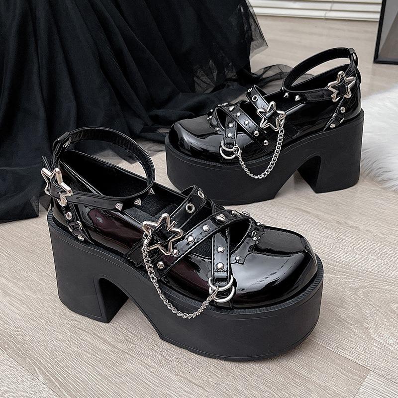Женская обувь в стиле панк, толстая подошва 9 см, туфли Мэри Джейн, туфли-лодочки для увеличения роста для JK-формы, модный металлический дизайн, женские туфли на высоком каблуке в стиле Лолита