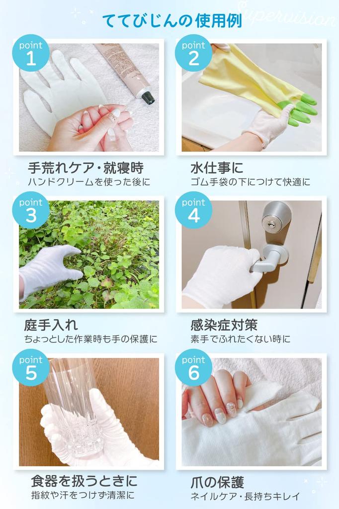 [Влагопоглощение и потоотделение] Даже если вы потеете, влага эффективно отводится, поэтому вы меньше подвержены переохлаждению от пота.◎ Высококачественная ткань нежно увлажняет, поэтому рекомендуется для ухода за огрубевшей кожей рук во время работы по дому или сна.◎ Пожалуйста, обратите внимание, что традиционные хлопчатобумажные перчатки не отводят влагу при потоотделении, поэтому они склонны вызывать холодный пот.
