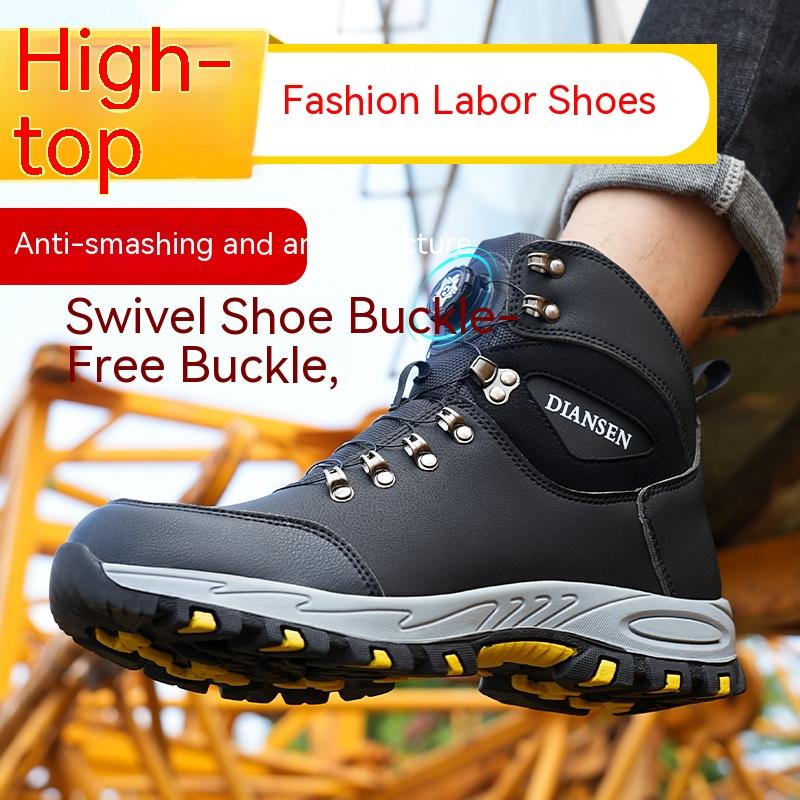 Вращающаяся кнопка Защитные ботинки со стальным подноском Для мужских рабочих ботинок Легкая носка Работа Строительство Искусственная кожа Защита от прокола Мужские ботинки