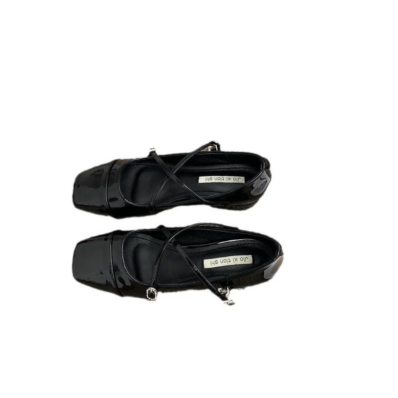 Туфли Мэри Джейн на толстом каблуке с серебристыми перекрестными ремешками и квадратным носком для женщин 2025 новая весенняя вечерняя модель, элегантные балетки