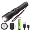 Aluminum Alloy White Laser Powerful LEP Flashlight 18650 or 21700 Battery Zoom Torch Light Lamp with Tail Rope Power Indicator