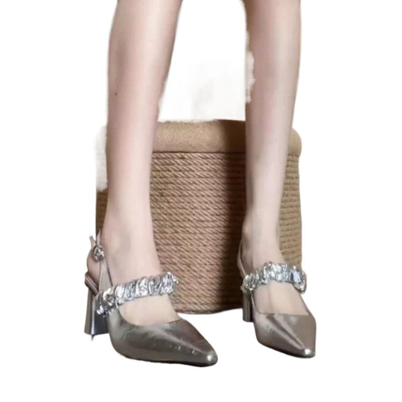 2025 Новые женские сандалии Женские сексуальные туфли на высоком каблуке со стразами и пряжкой Женская повседневная обувь Золотистые Серебристые Остроносые Модные Летние Туфли