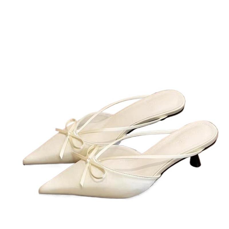 Низкий каблук Тонкий каблук Современные тапочки Платье Натягивающиеся Женская обувь 2025 Горячая распродажа Однотонные С бантом-бабочкой Милые женские тапочки