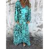Женское длинное платье свободного кроя с длинными рукавами и V-образным вырезом с леопардовым принтом