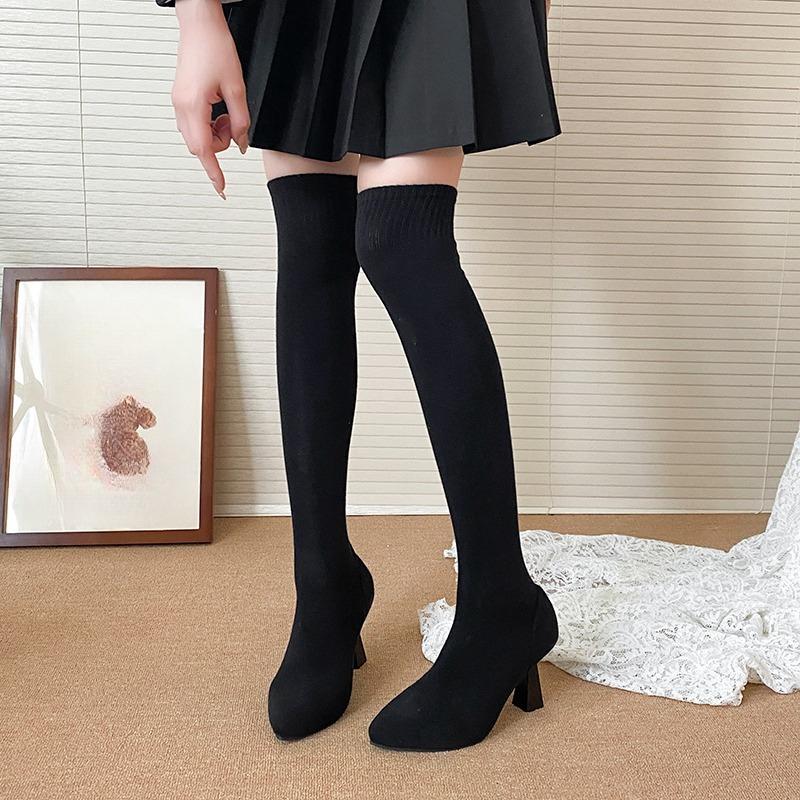 Вязаные носки ботильоны модные с острым носком рукав дышащие нескользящие износостойкие тонкий каблук