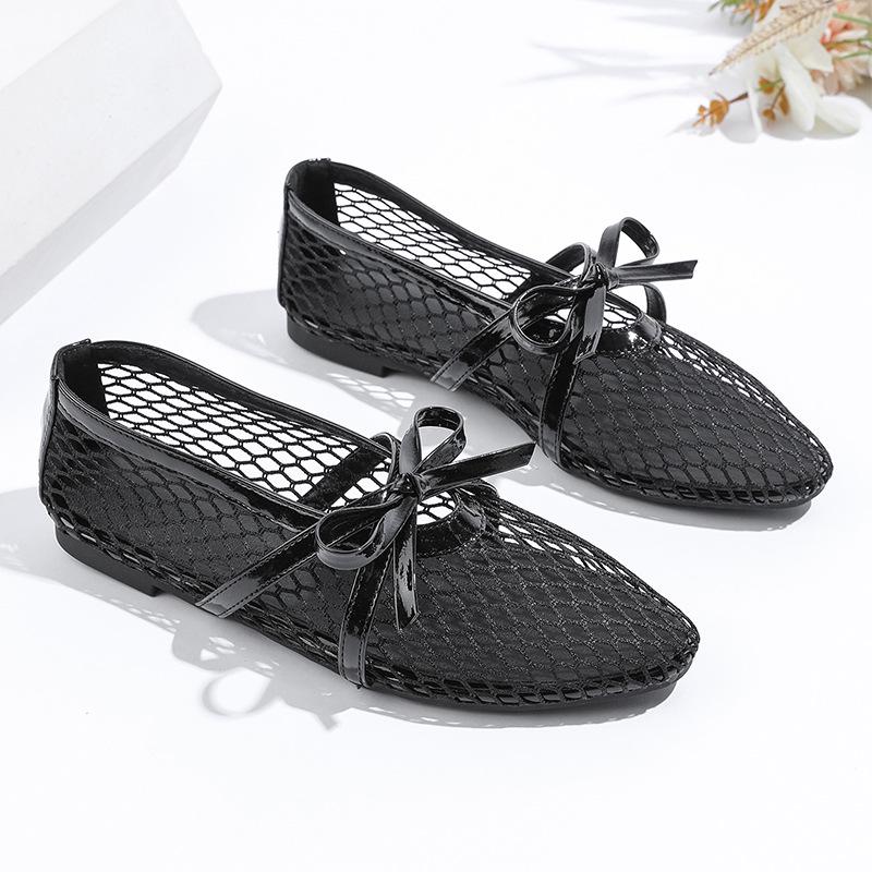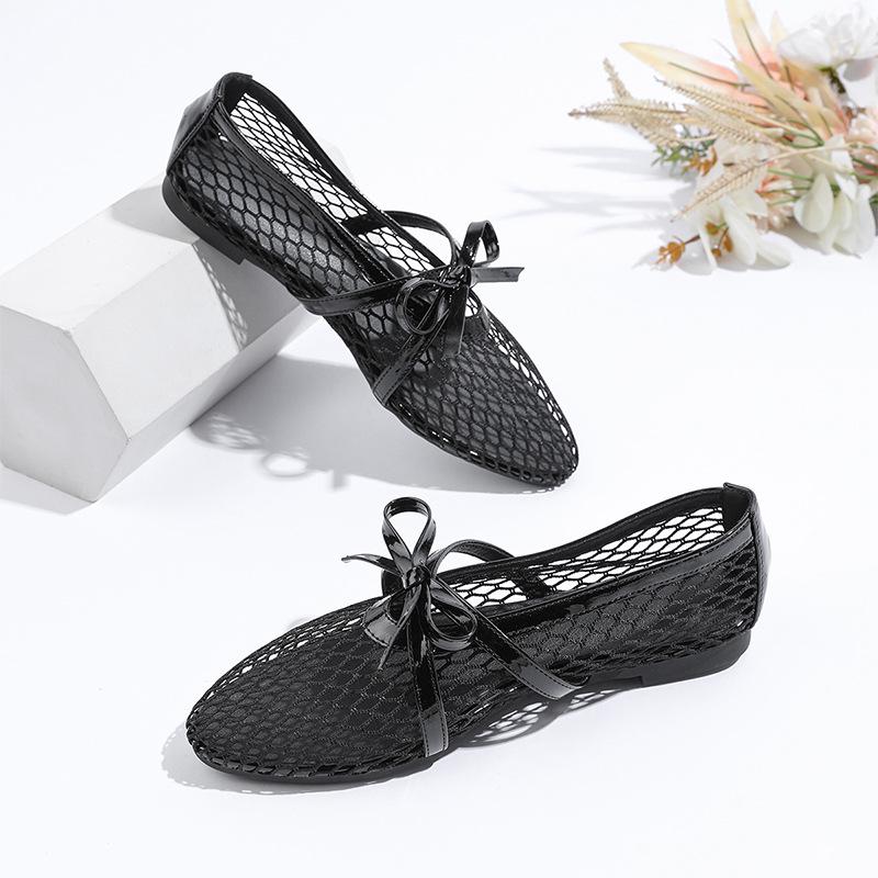 Новые сетчатые туфли-балетки с бантом, дышащие, женские, полые, на мягкой подошве, удобные, Мэри Джейн, женские, для отдыха, с ремешком на щиколотке, с круглым носком