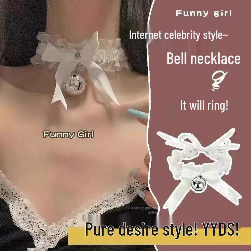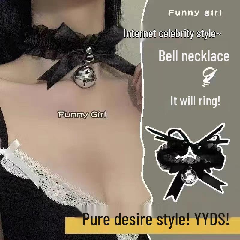 Кружевной чокер с колокольчиком Ziquy - Женское рождественское ожерелье-лента на шею горничной
