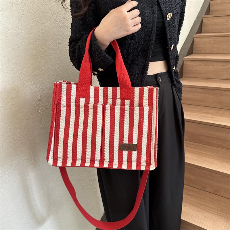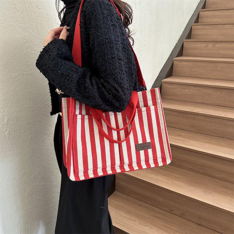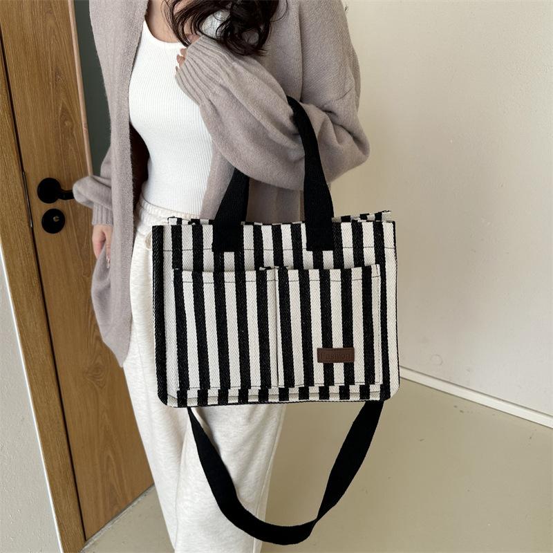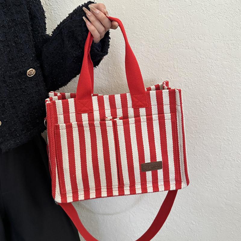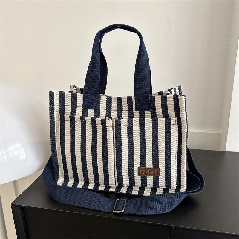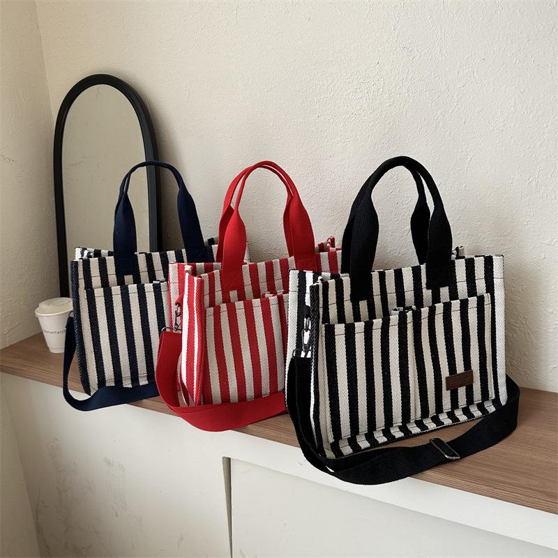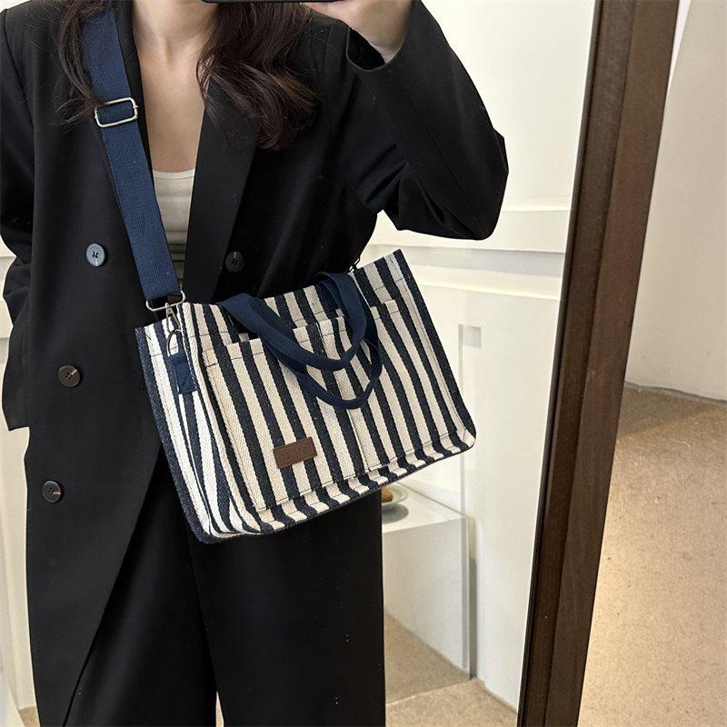 Женская полосатая сумка-тоут Простая сумка для покупок Большая вместимость Сумка через плечо Холщовая Стильная сумка кроссбоди Повседневная квадратная сумка для поездок на работу CLE