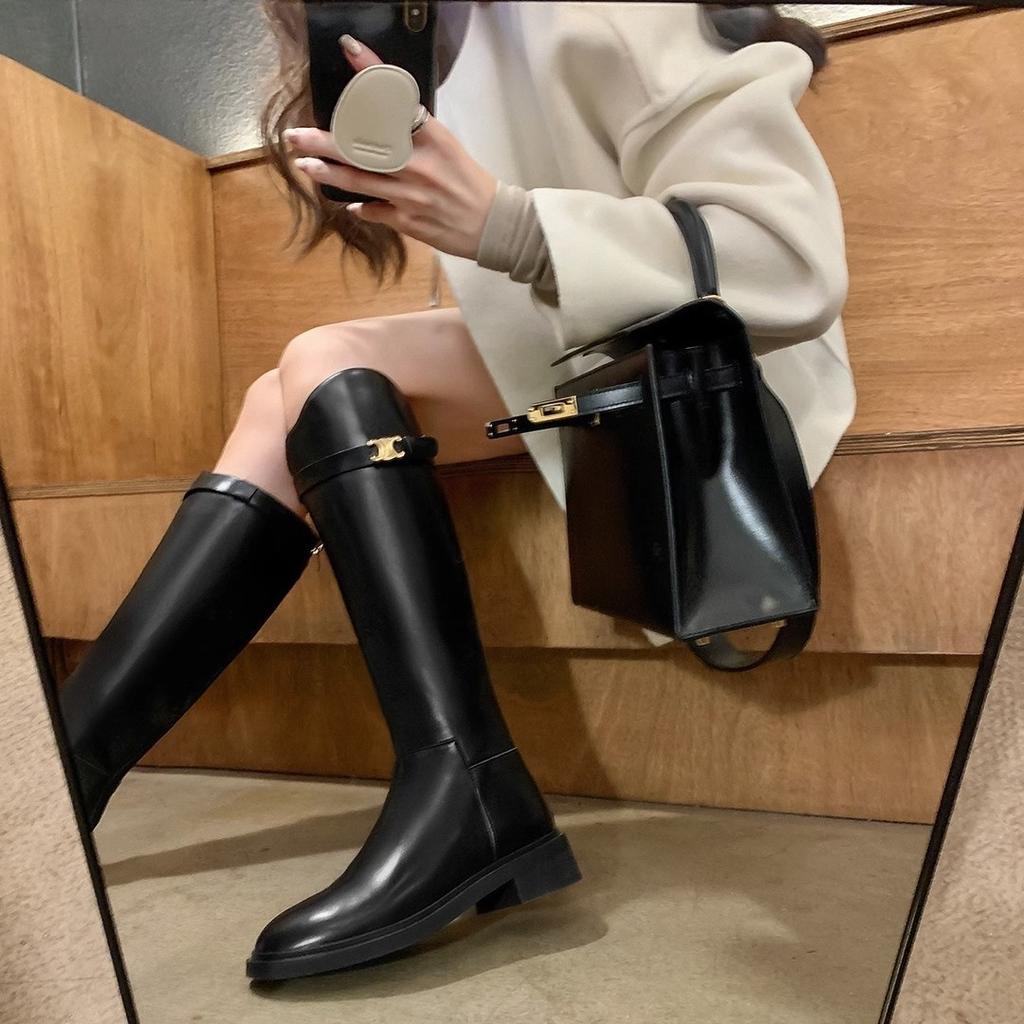 [Шей Су Иинь] Скелетный класс~ Осень-зима 2025 косая пряжка Триумфальной арки с толстым каблуком высокие рыцарские сапоги