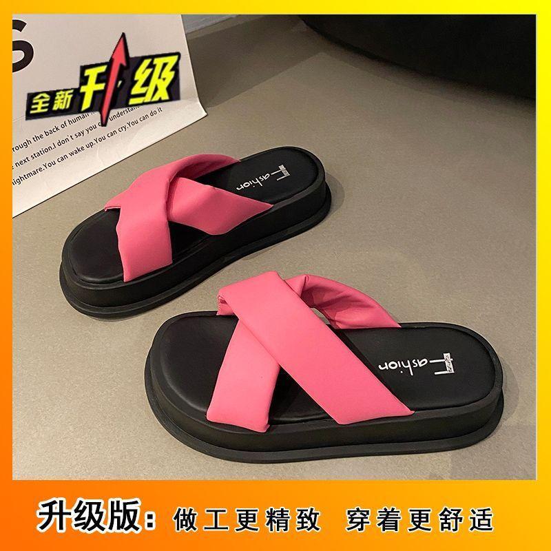 Fashion and foreign style thick bottom cross word cool slippers ins tide 2025 spring and summer new Internet celebrity slippers women's wear