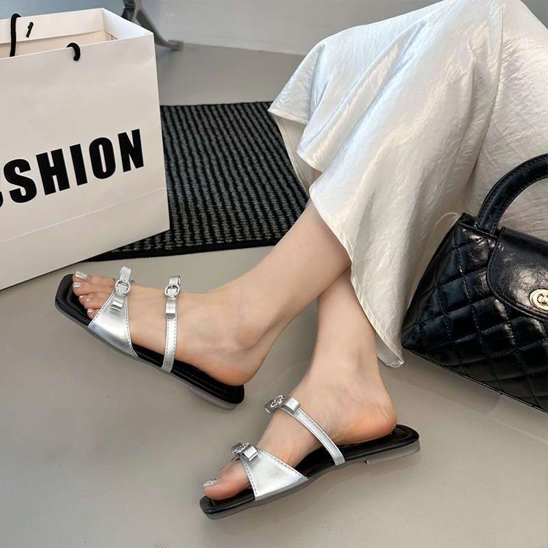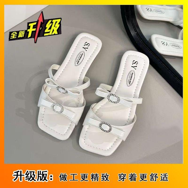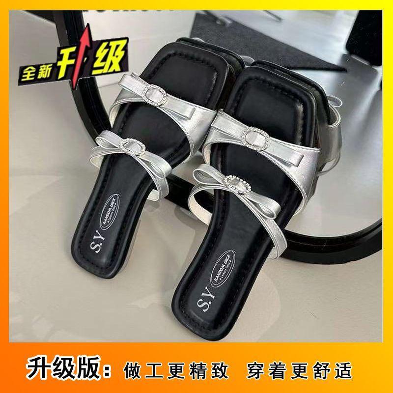 Сказочный ветер бант однословные шлепанцы женские 2025 лето новый носить красивые квадратный носок с открытым носком прохладные шлепанцы