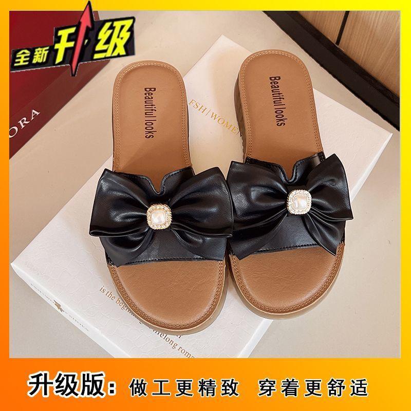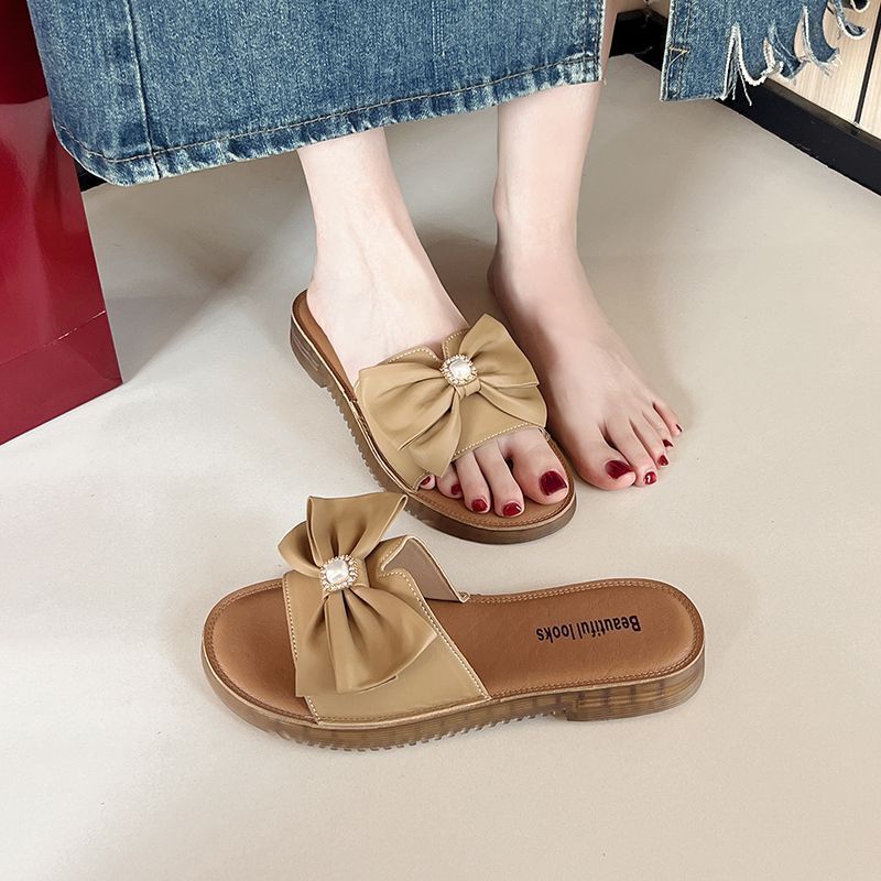 Женская универсальная верхняя одежда с плоским бантом, однословные крутые тапочки 2025 лето новые нескользящие с мягкой подошвой удобные крутые тапочки