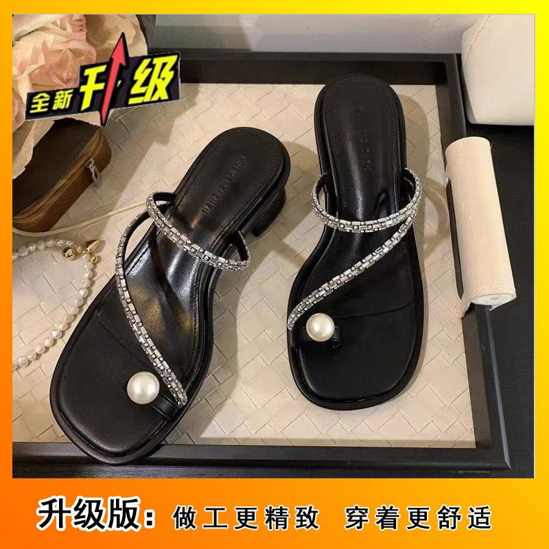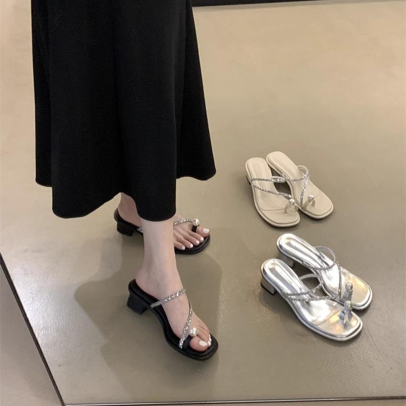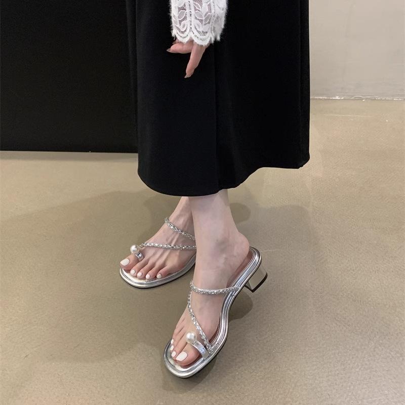 Versatile Roman pearl with sandals 2025 niche design sense summer beach shoes outside wear Korean version of Internet celebrity tide