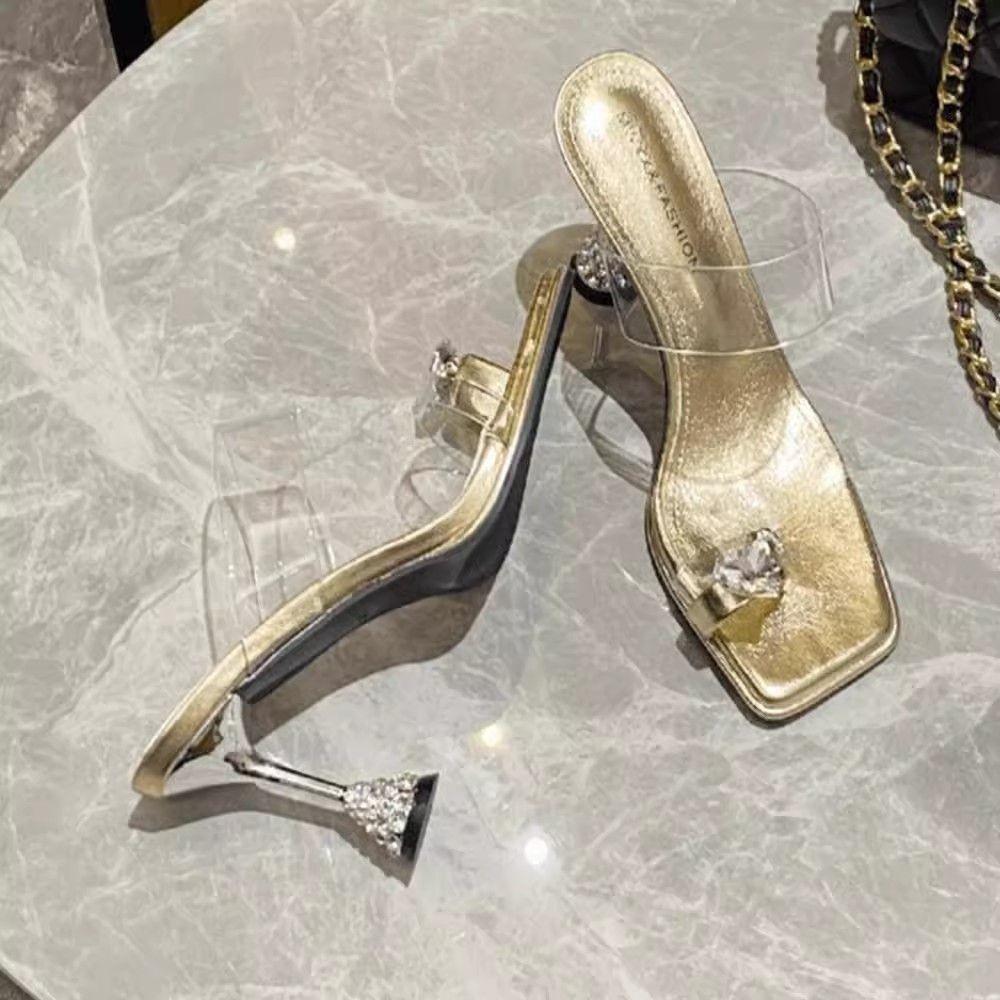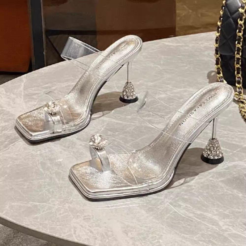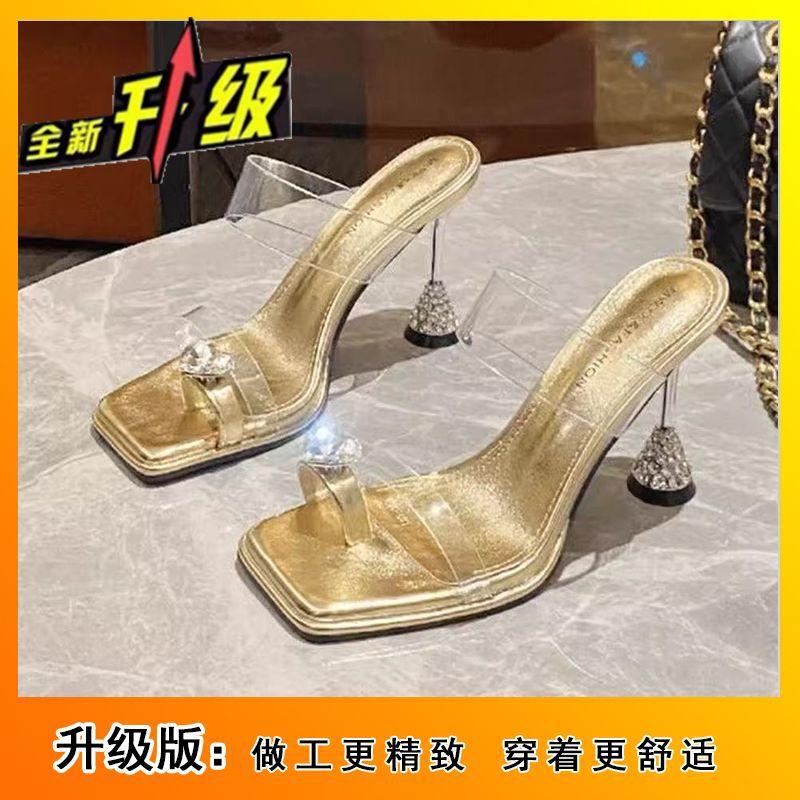 2025 лето новый темперамент нескользящие высокие каблуки модная обувь дофамин тонкие супермягкие босоножки с открытым носком прозрачные