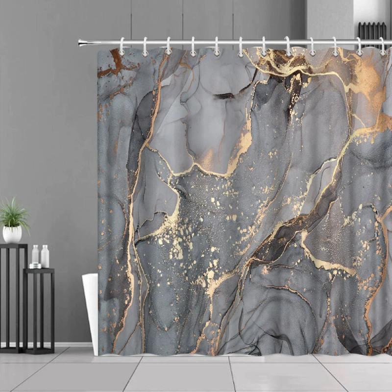 Модная серая золотистая мраморная шторка для душа для ванной, водонепроницаемая