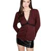 Сексуальная кружевная рубашка с длинным рукавом 2025 Осень-Зима Приталенная полосатая рубашка для женщин