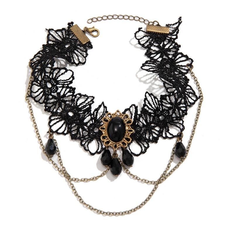 1 шт. Винтажный Лолита Кружевной Браслет на руку Цепочка на ногу Черный Готический Фэн-шуй Подвеска с бахромой Ювелирное изделие