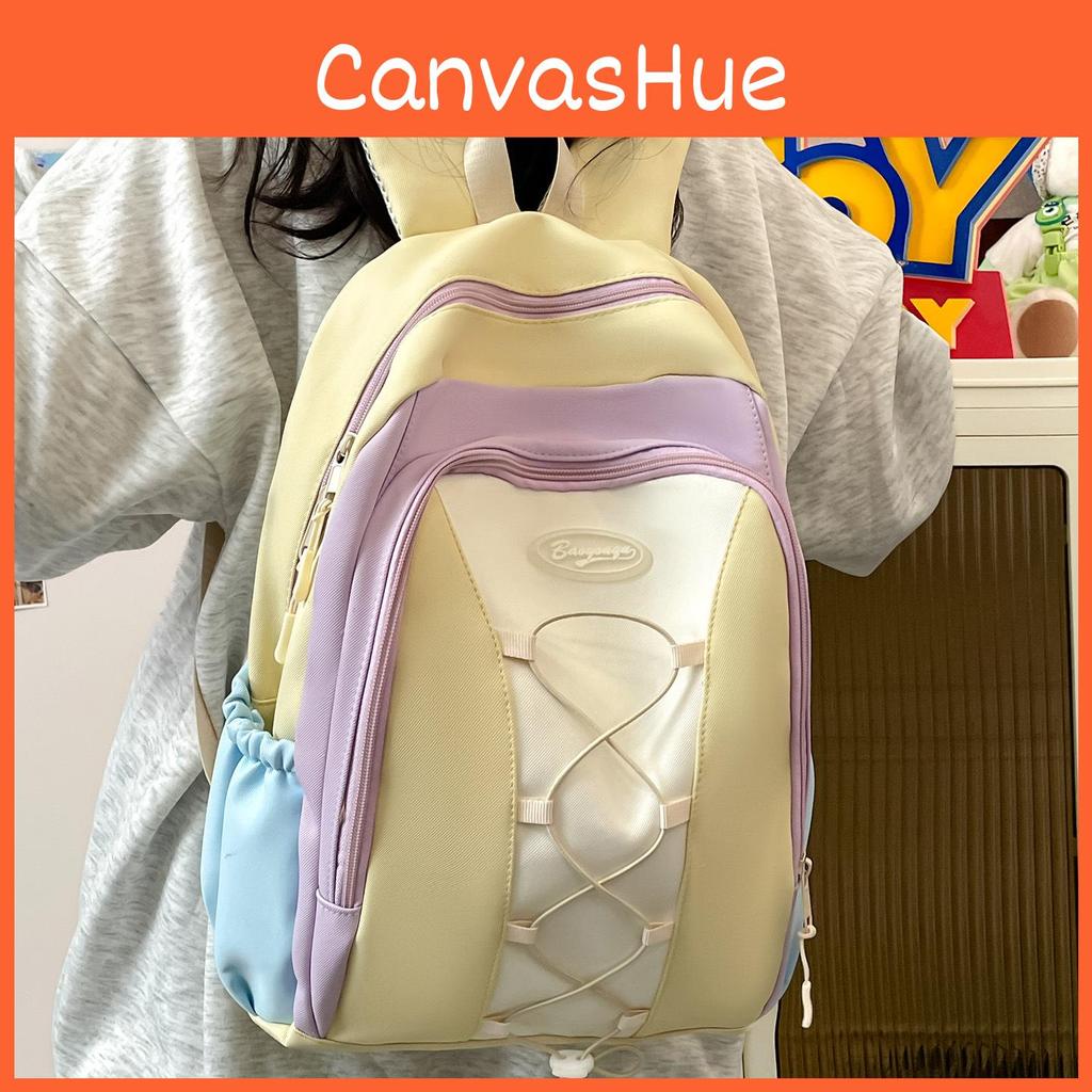 Simple Blocking Color Strap Decor Student Large Capacity Backpack For School