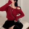 Вязаный свитер с открытыми плечами для женской осени и зимы, новый, нишевый дизайн в стиле spicy girl, облегающий и элегантный, универсальный топ
