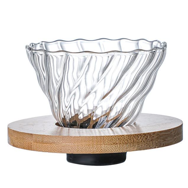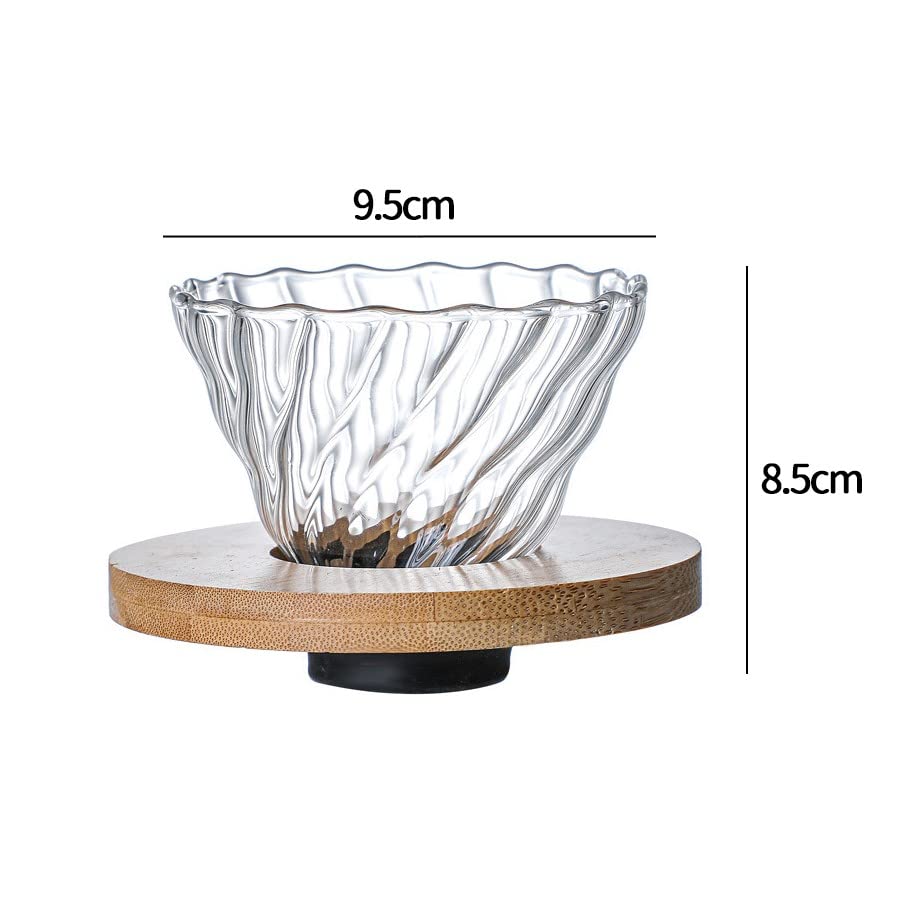 Желаемый термостойкий стеклянный кофейный дриппер, форма конуса, бамбуковый держатель, можно мыть в посудомоечной машине (Маленькая кофеварка-дриппер)