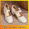 Женские туфли-лодочки на толстом каблуке, новинка 2025 года, осенне-зимние, жемчужные, с круглым носком, однотонные, на платформе, Мэри Джейн, на высоком каблуке