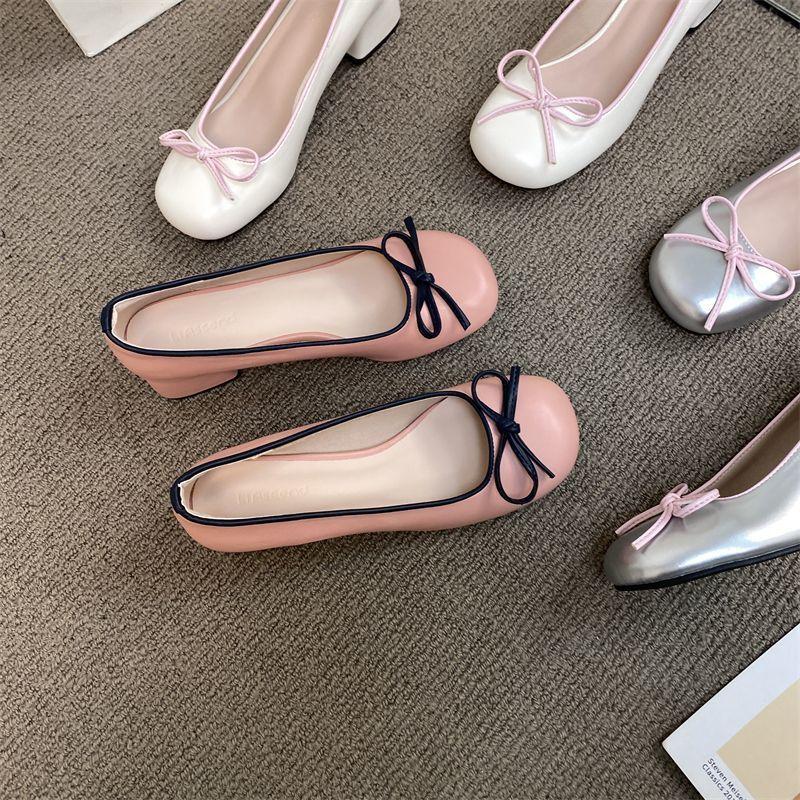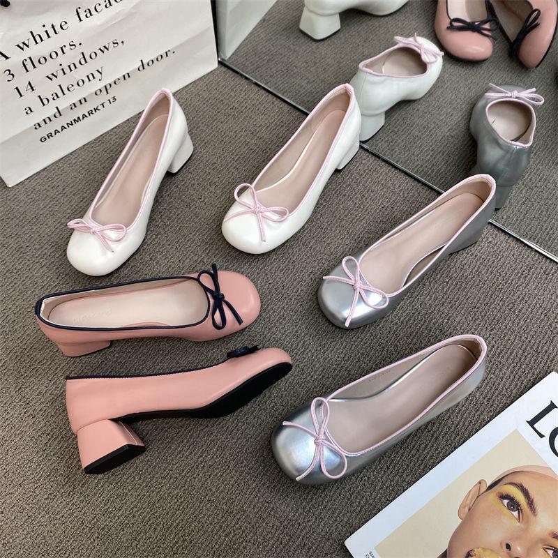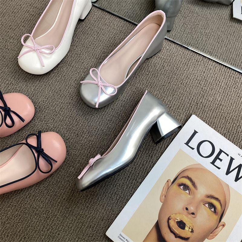 Милые туфли-лодочки, с открытым верхом и ремешком, туфли Мэри Джейн, новый французский серебристый круглый носок, темпераментный бант осенью 2025
