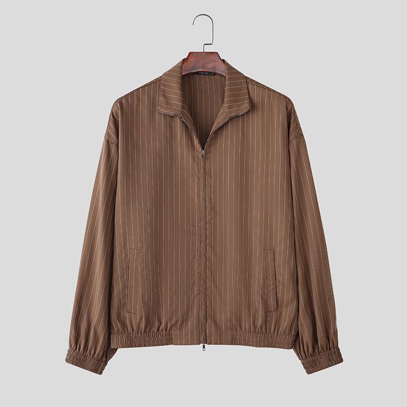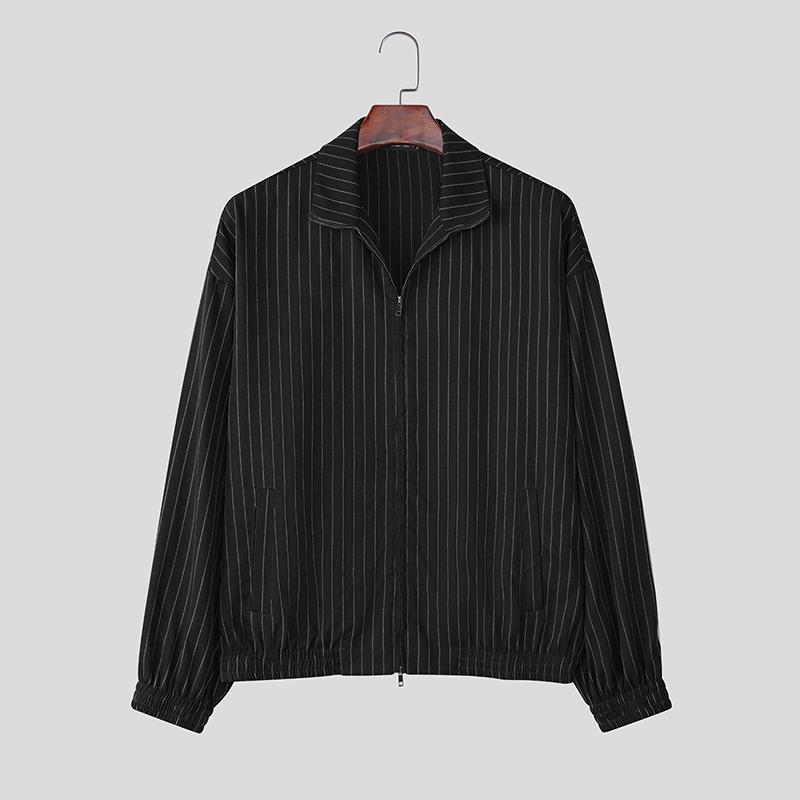 INCERUN Мужские тонкие куртки-пальто с лацканами, длинными рукавами, в полоску, повседневные, на молнии