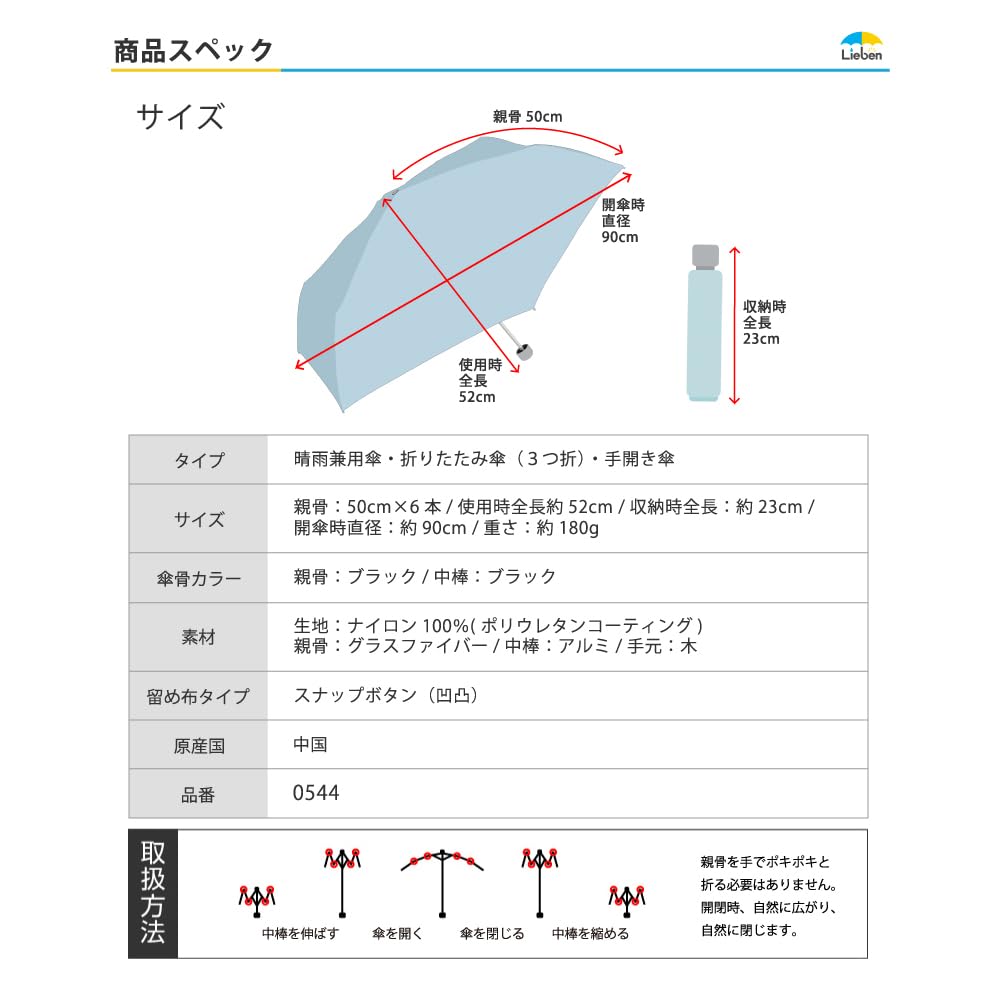 Ребра: 50 см x 6 ребер Общая длина: приблизительно. 52 см Общая длина в сложенном виде: приблизительно. Диаметр в открытом виде 23 см: приблизительно. 90см Вес: приблизительно. 180г
