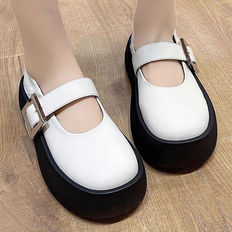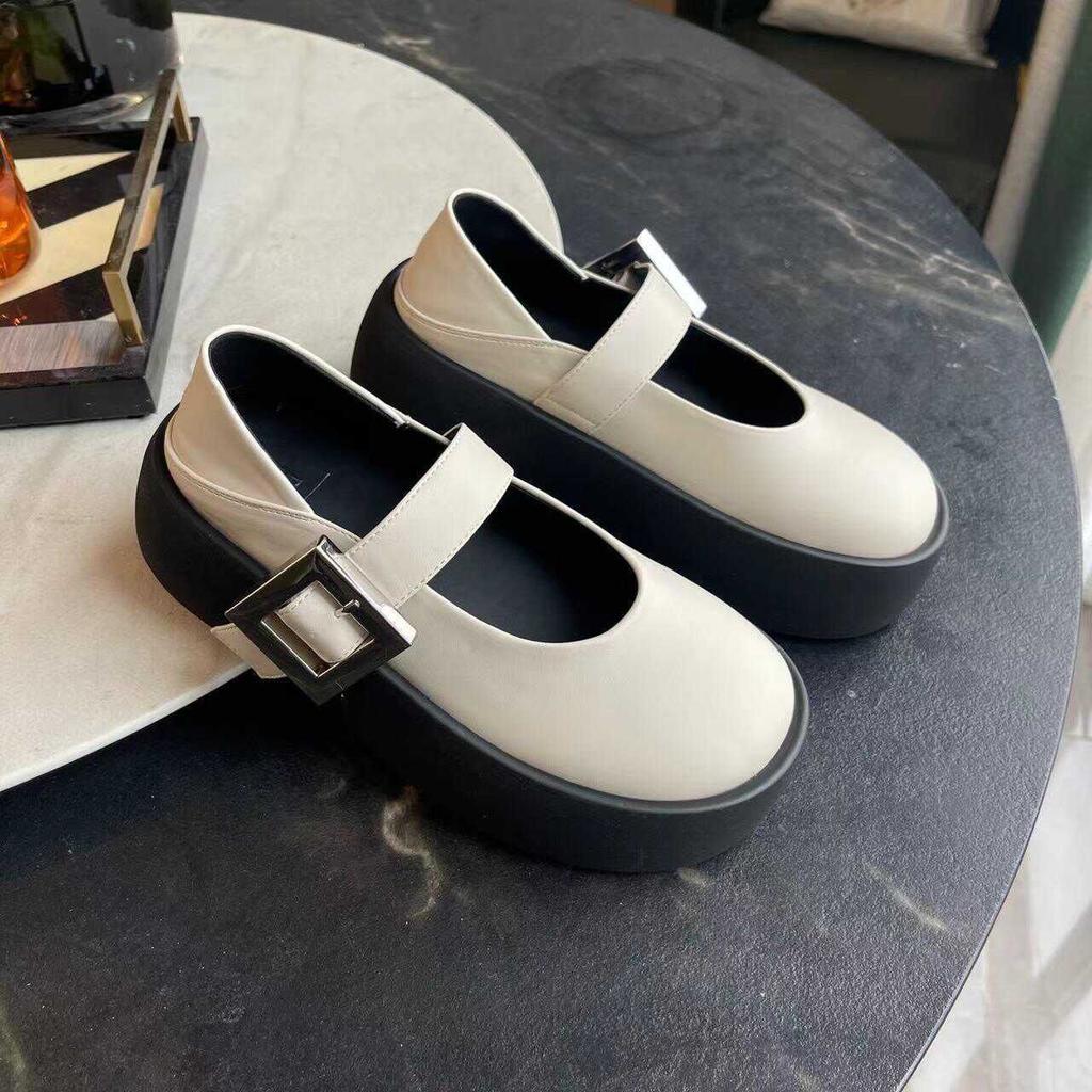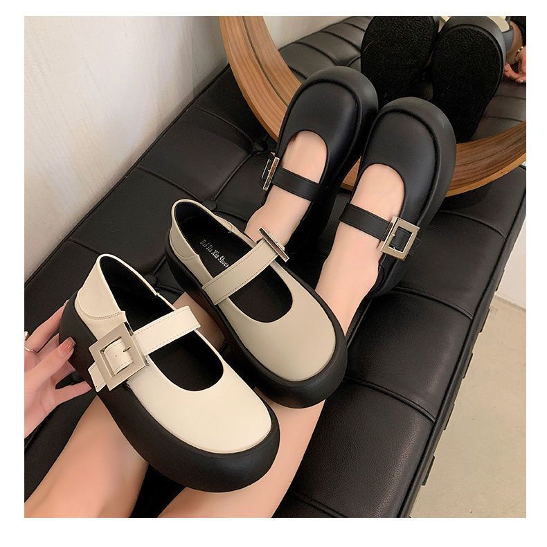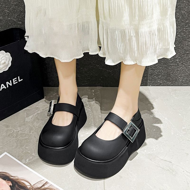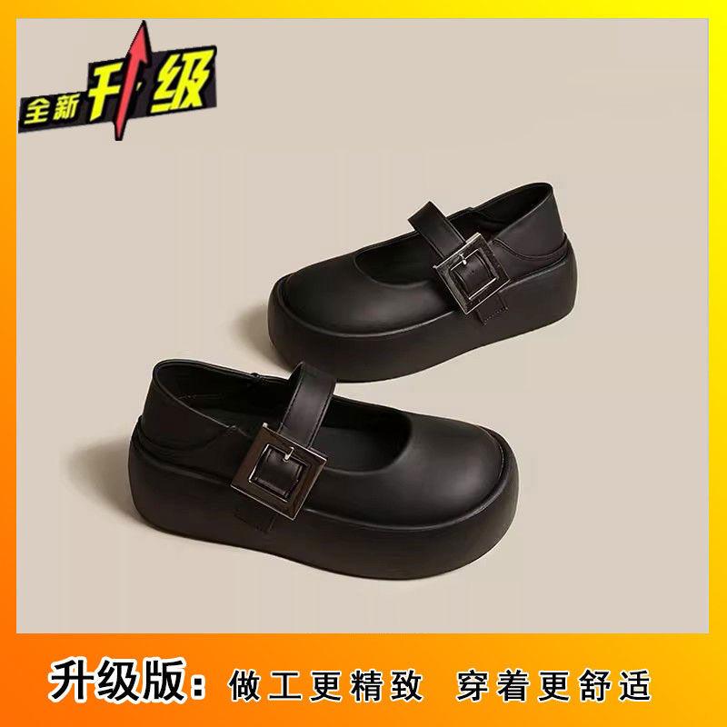 Простые туфли Мэри Джейн с неглубоким вырезом, осенне-зимние новые лодочные туфли 2025 года, туфли на платформе, туфли-маффин, туфли с большой головкой, маленькие кожаные туфли для женщин.