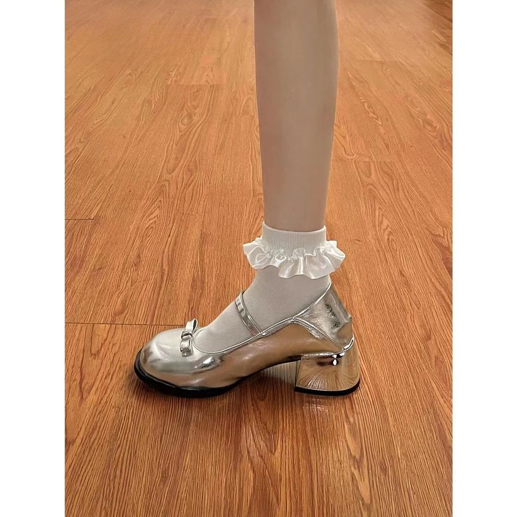 Silver French Mary Jane shoes women's 2025 autumn new Korean version light mouth thick heel with skirt round head single shoes