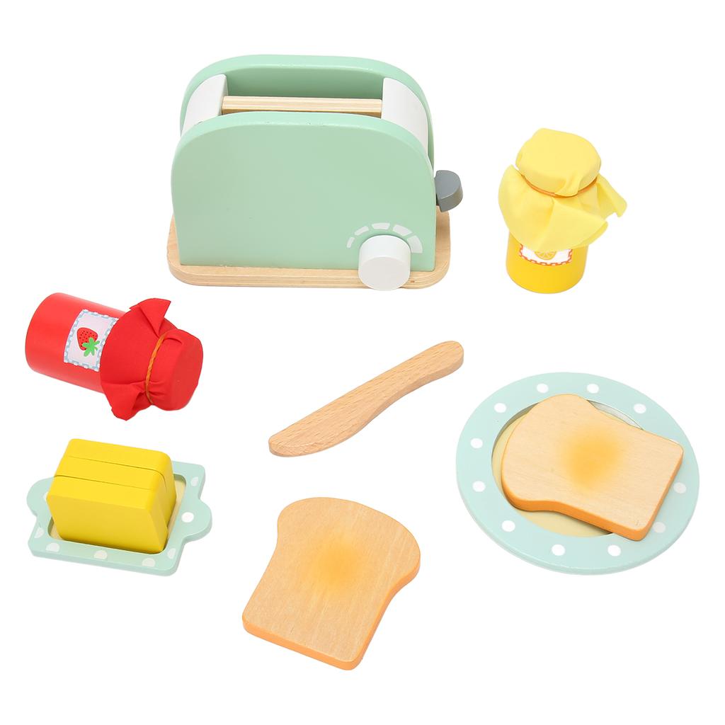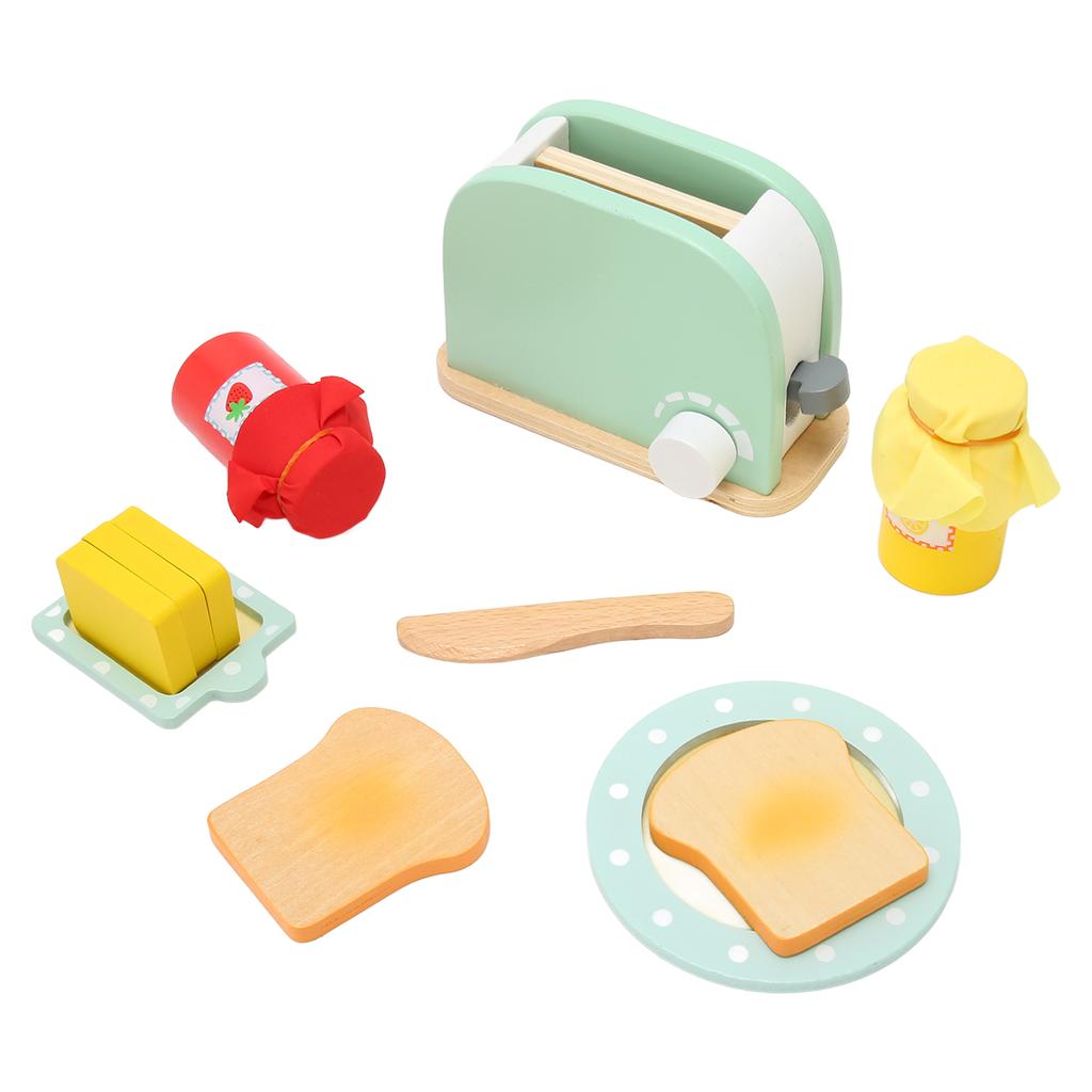 Игрушечный набор тостера с бутылкой, ломтиками хлеба, тарелкой, желтым деревянным блоком, безопасная игрушка-хлебопечка для девочек и мальчиков
