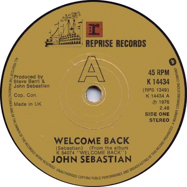 7inch Record JOHN SEBASTIAN - Welcome Back K14434 Reprise Records 1976 UK Rock Used