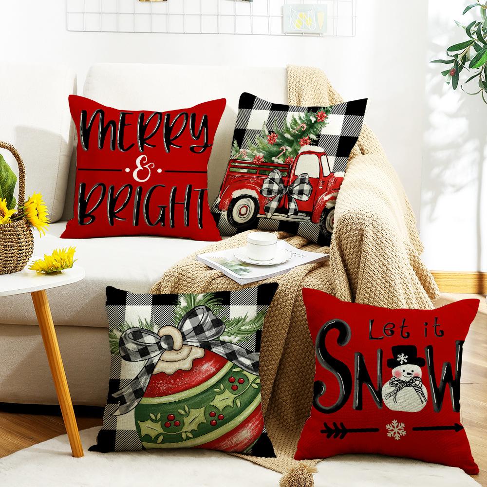 Новое красное полосатое праздничное украшение Семейный колокольчик Снеговик Рождественская наволочка для диванной подушки Декоративная подушка